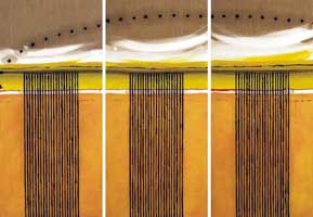 Dem Betrachter der Werke des Künstlers zeigen sich Rechtecke, proportional zu anderen Rechtecken. Quadrate. Striche in gleich großen Abständen. Ein energetisches Spannungsfeld zwischen Flächen, Strichen und Batzen. Scharf gegeneinander abgegrenzte Flächen. Kontraste: weiß, braun, schwarz, hie und da ein batziges Rot oder quellend. Striche an den Außenkanten, gelegentlich.